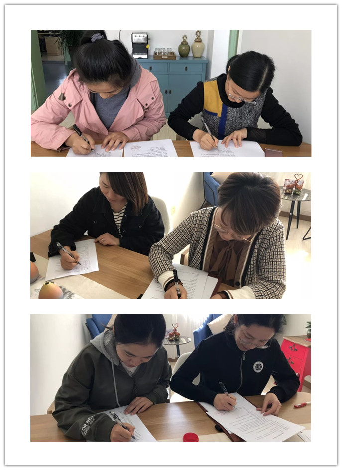 接着,参会的老师庄重地在协议上签下自己的名字。师傅们郑重承诺热情、诚恳、耐心、全面地带教被指导老师,并在集体教学和个别化的设计组织,在教研方案的活动设计和日常指导等方面加以全面地指导;徒弟们也表决心,认真、自觉、主动、虚心地接受指导教师带教。