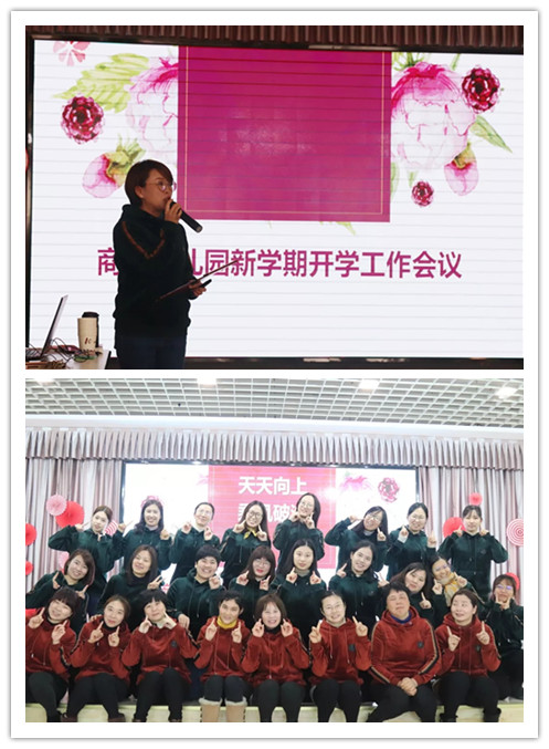 新学期开学会议:园长徐老师主持本次会议并为大家带来新学期开学寄语。新年新气象,在徐老师的主持下,全体教职工共同参与游戏,在游戏中老师们感受到:信任是团队合作的前提;信任是团队不断成功的基础;没有高度信任就没有卓越团队。