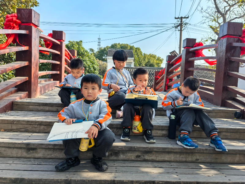 当孩子们透过照片与视频,第一次望见古桥上那斑驳的石纹,第一次听老师说起颐浩禅寺前那棵千年的银杏,他们的小眼睛,忽然亮了起来。“老师,我想去看看古桥,它摸起来是什么感觉呀?”“银杏树真的有那么高吗?它的叶子可以用来做什么?”于是,一场由孩子们发起的探秘之行就此开始……